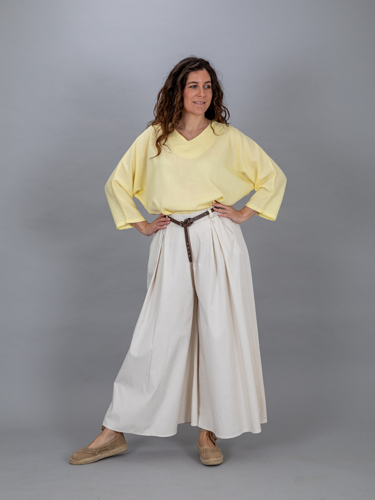 Elől- hátul V kivágású kellemes bőrbarát anyagú T ujjú felső. Hátán a nyakrésznél nagy masni díszíti. XL-es méretig ajánljuk.